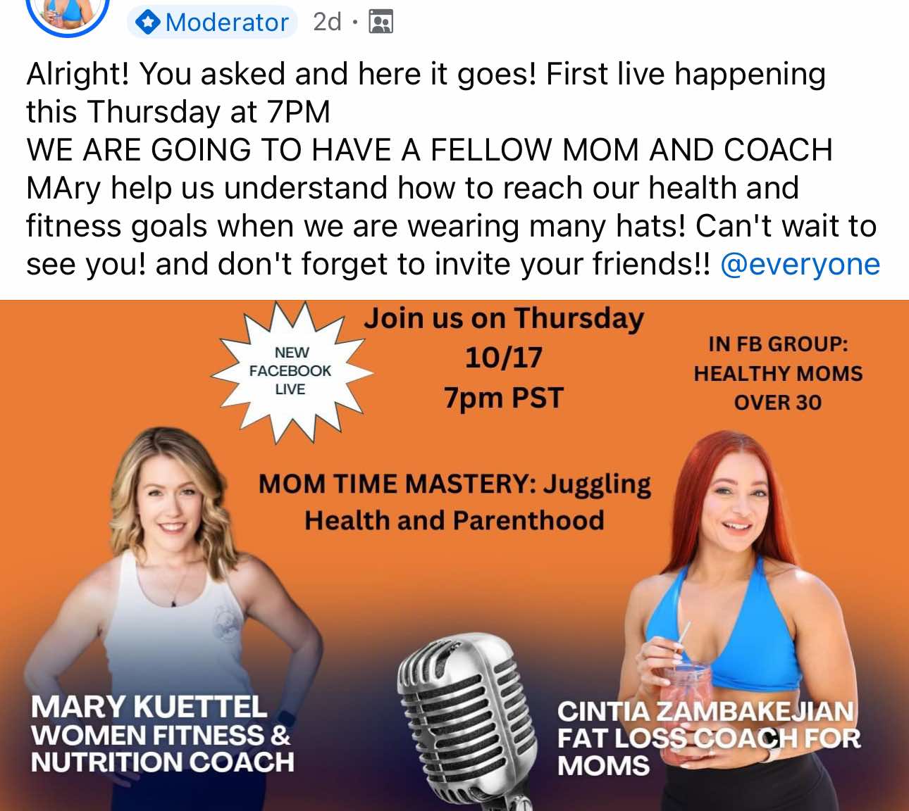 Join this judgment-free zone for FREE! Led by Cynthia, a health and nutrition coach with more than 8 years of experience specializing in and helping women and moms lose body fat and get "toned" without restrictive dieting! you’ll get the support you need and answers to your biggest nutrition and fitness questions in this fun and inspiring group!